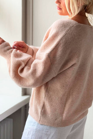 Ihana pehmeys, kauniit värisävyt ja juhlava malli tekee Lotta-neuleesta ehdottoman suosikkini ByPias neuleista! Ostin sekä tämän rosen että beigen Lotan, jotka sopii mainiosti niin hyggeilyyn kuin juhlaan. Yksi koko joka sopii itselle hyvin. Neuleita ei ole runsaasta käytöstä huolimatta tarvinnut pestä vielä kertaakaan, joten en tiedä miten istuu pesun jälkeen. Hihojen alapuoli nyppyyntyy, koska kuidut ovat hyvin pehmeitä, ja hihat ovat hyvin väljät. En ole vielä löytänyt neulekampaa, vaikka on kerrottu, että ByPias nettikaupasta se pitäisi löytyä.