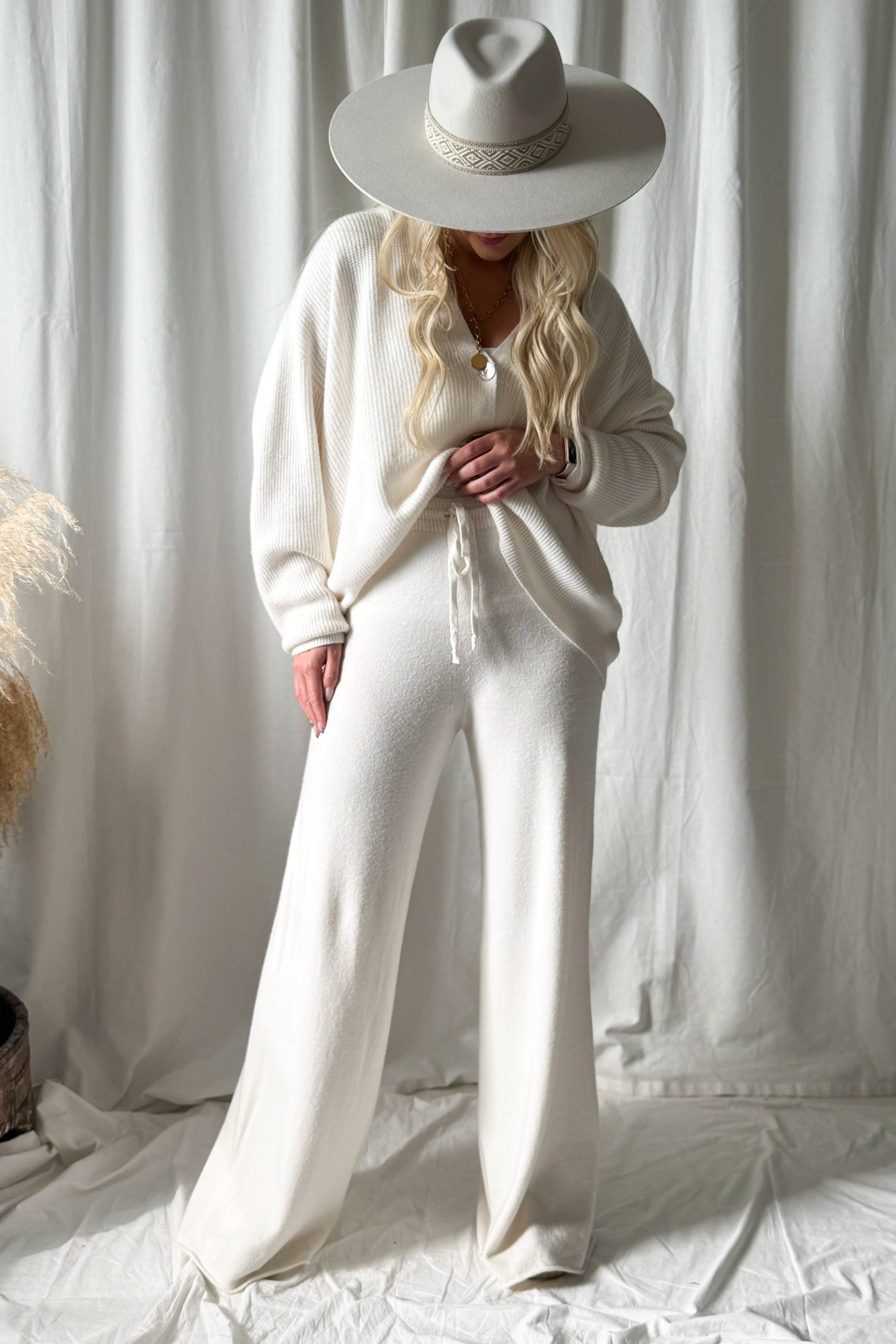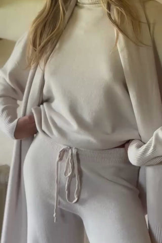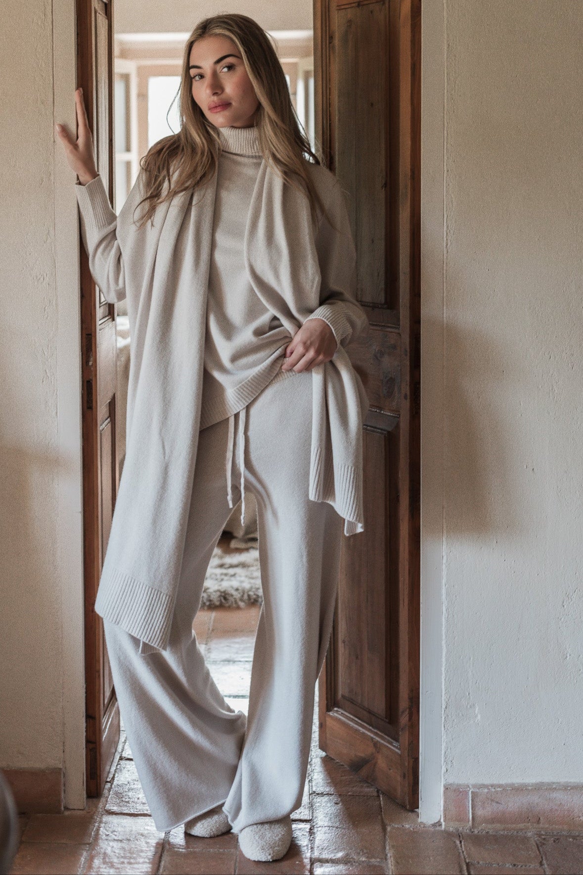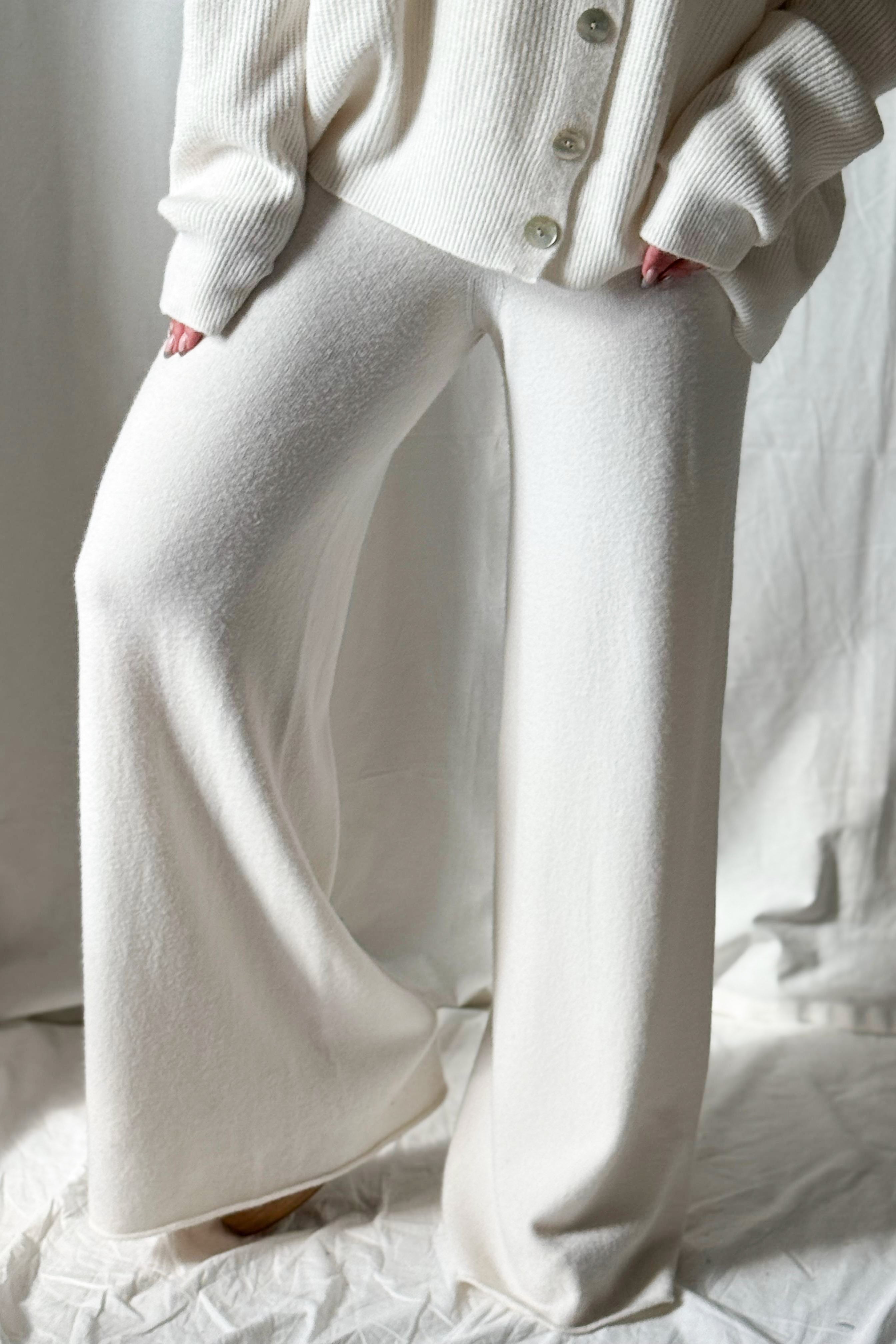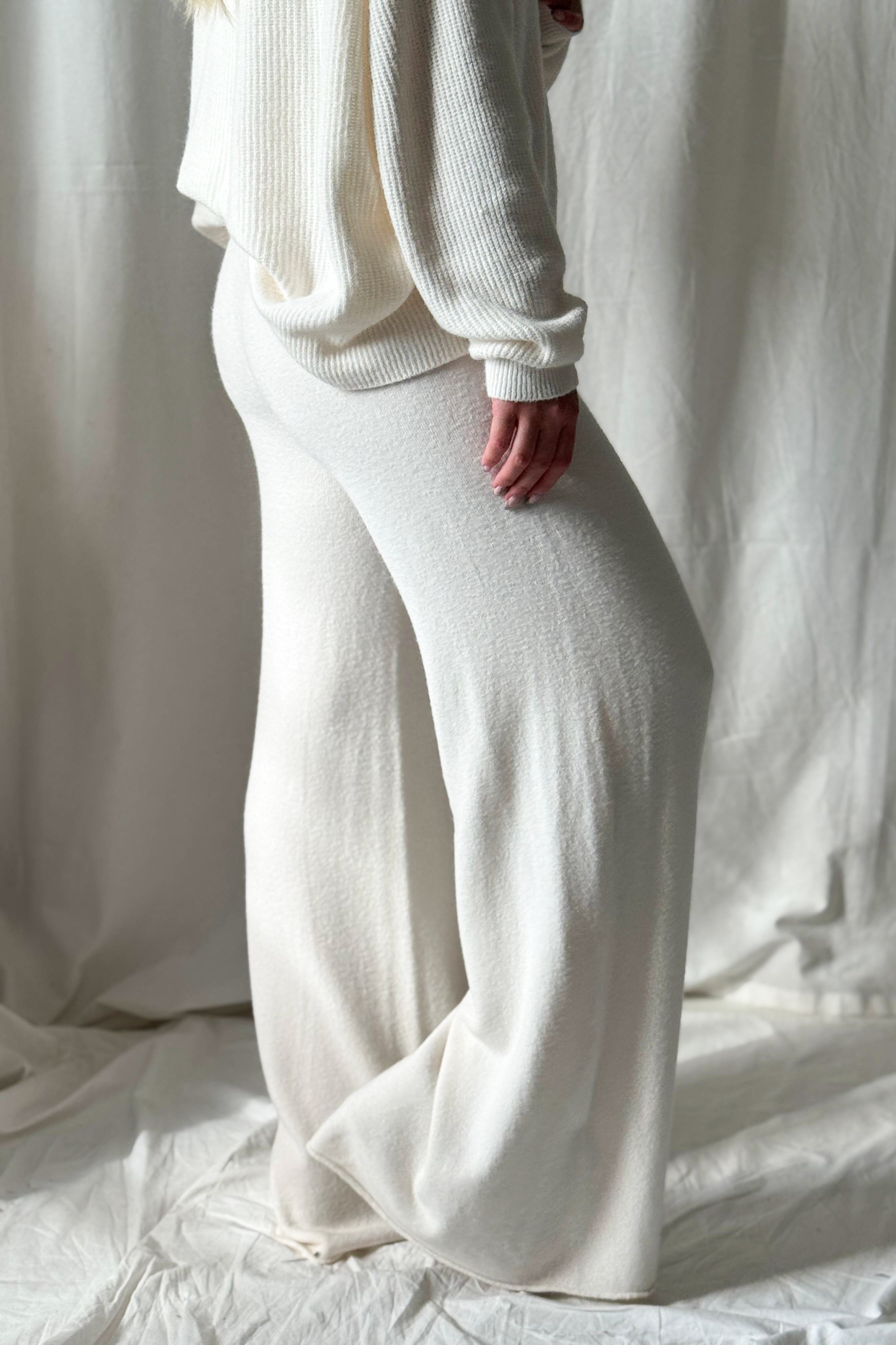 Ylelliset ja rennot pitkät neulehousut, jotka yhdistävät mukavuuden ja tyylikkyyden. Näissä pehmeistä materiaaleista valmistetuissa housuissa on joustava vyötärö ja kiristysnyöri, jotka takaavat täydellisen istuvuuden. Leveä lahjemalli tuo modernin ilmeen ja tekee housuista miellyttävät käyttää sekä kotona että rennossa vapaa-ajan tyylissä.