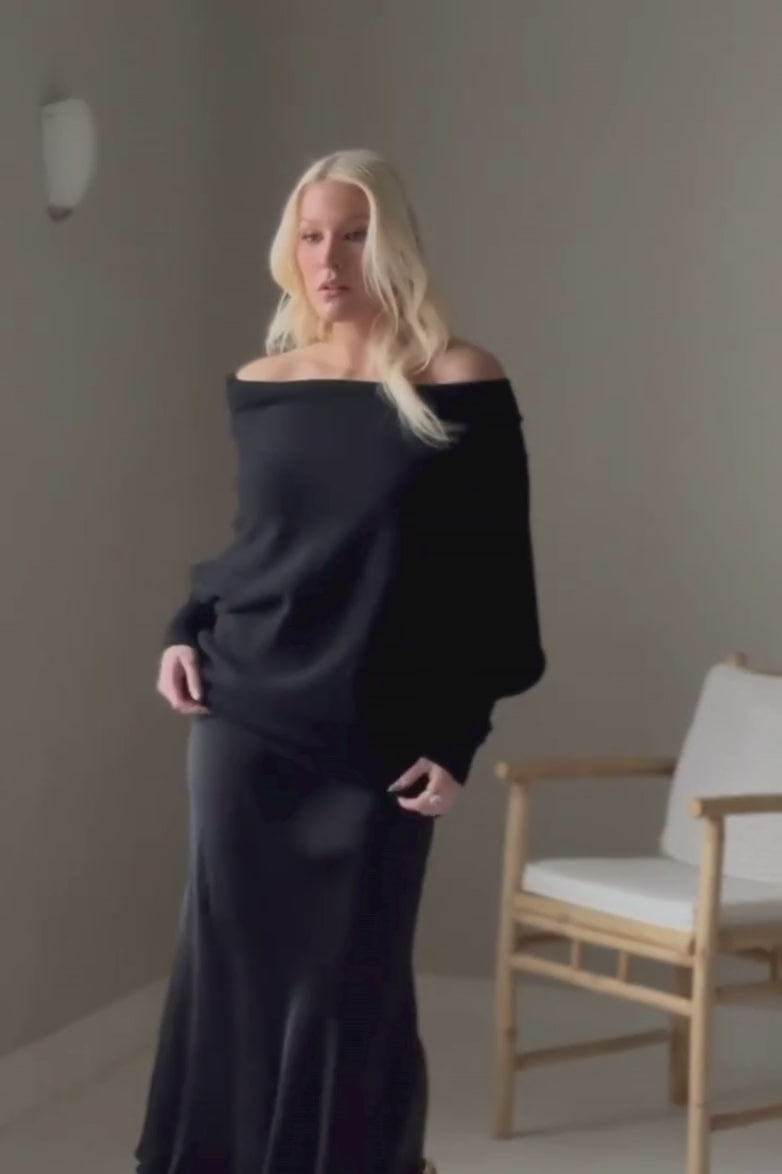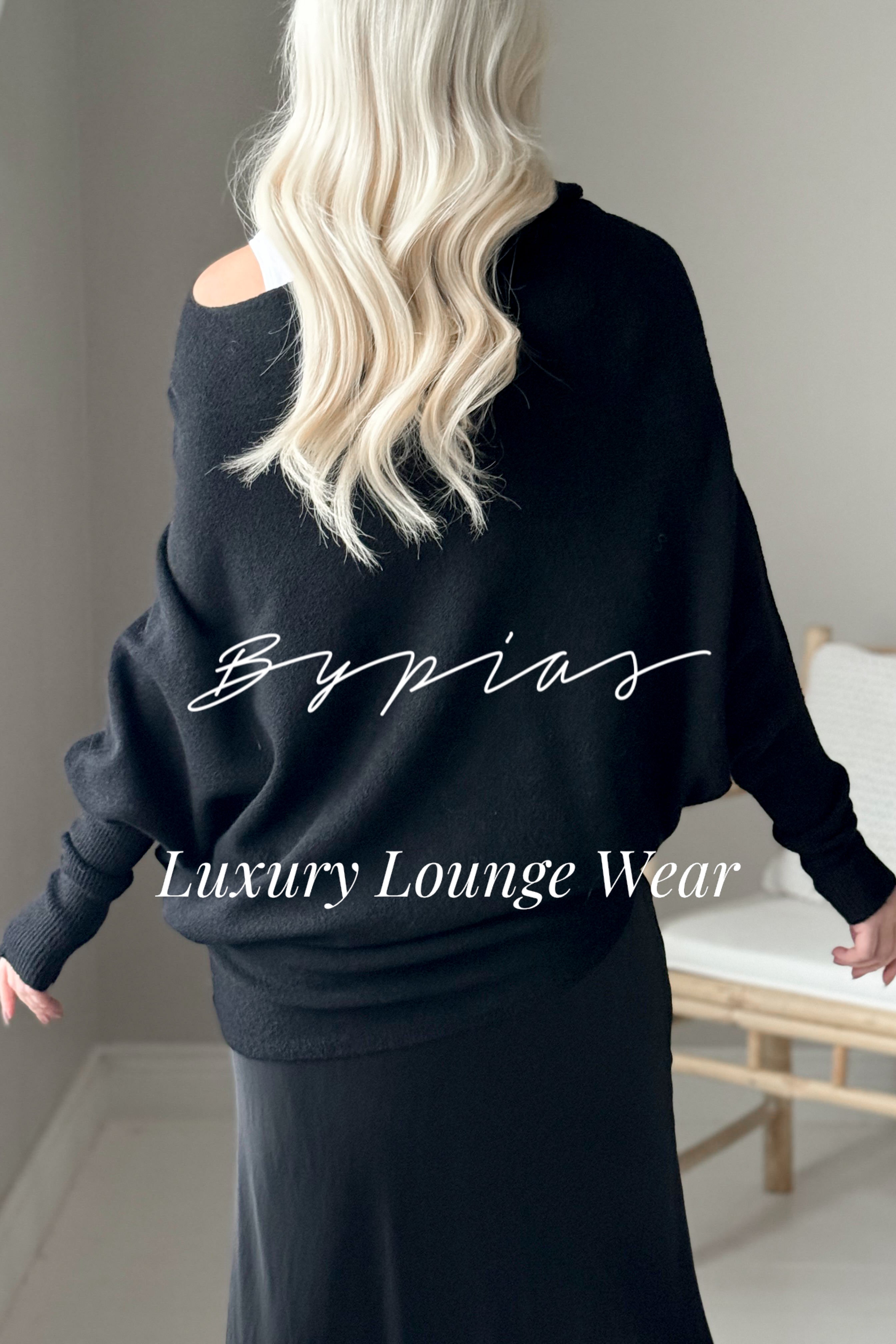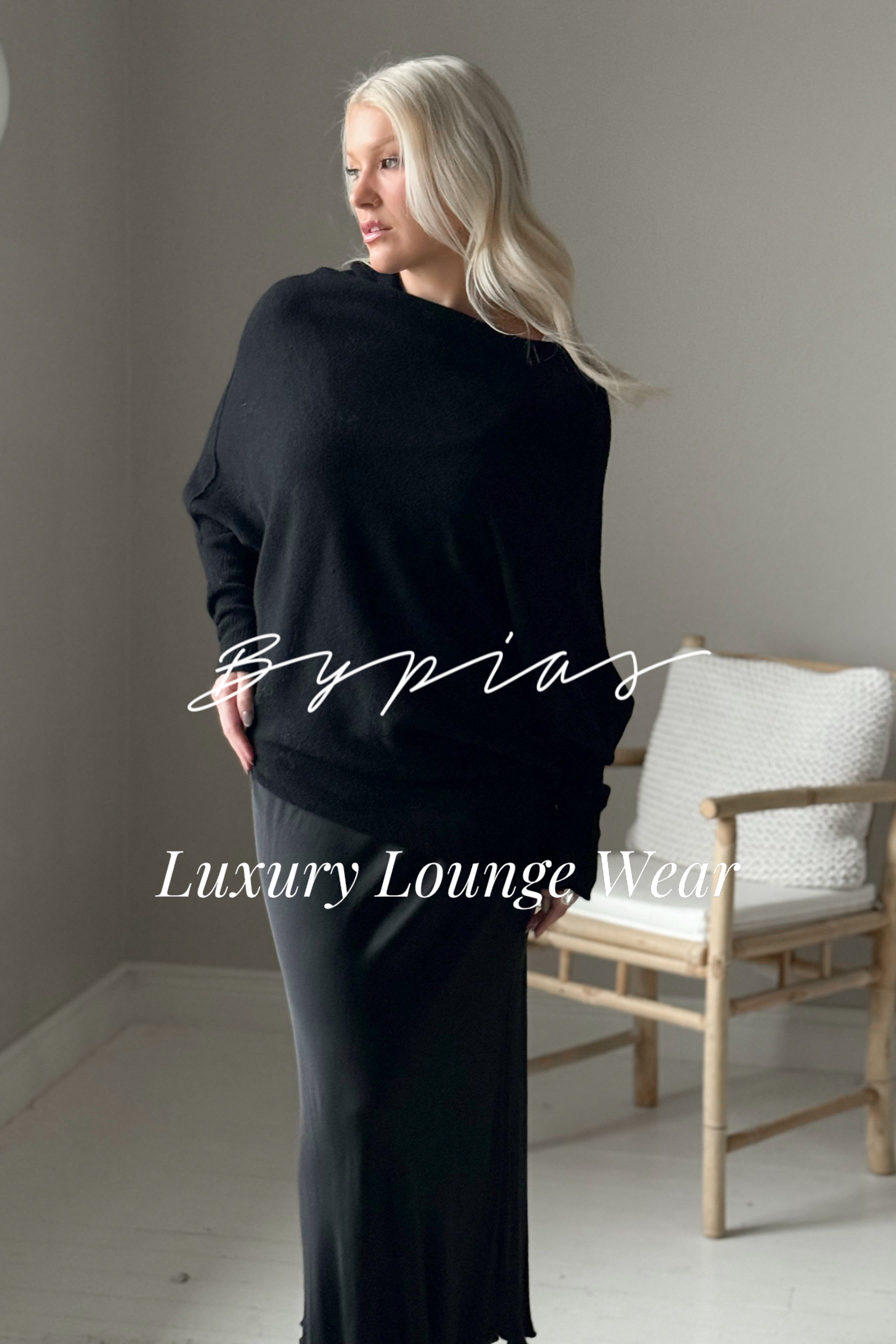 Huikea, ylellinen, joustava neulejumpperi, jossa leikkauksessa epäsymmetrinen helma. Voit pukea off shoulderiksi, laskea helman vyötäröltä alas tunikaksi. Koko hienouden kruunaa erityinen viskoosisekoite-neuloksen materiaali.
