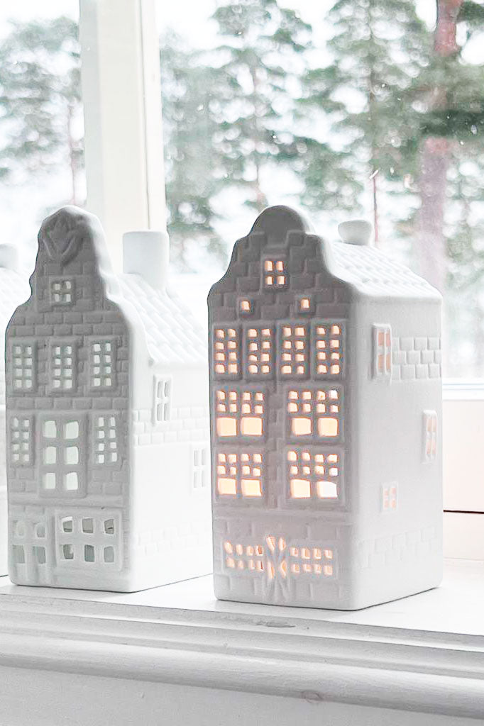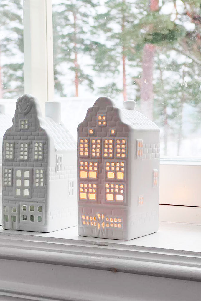 Joulun tunnelmaa! Suloiset pienet talolyhdyt valmistettu posliinista.