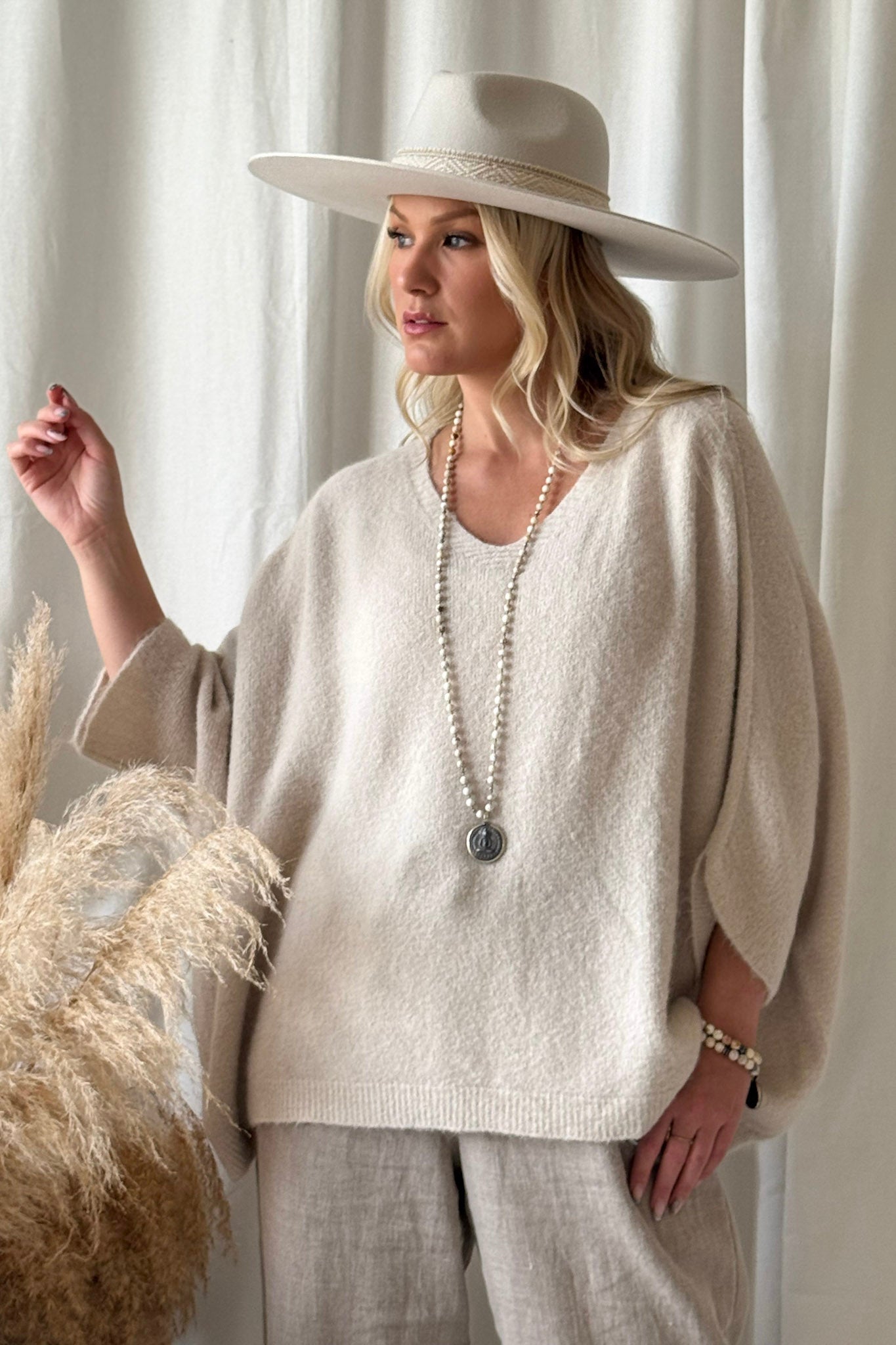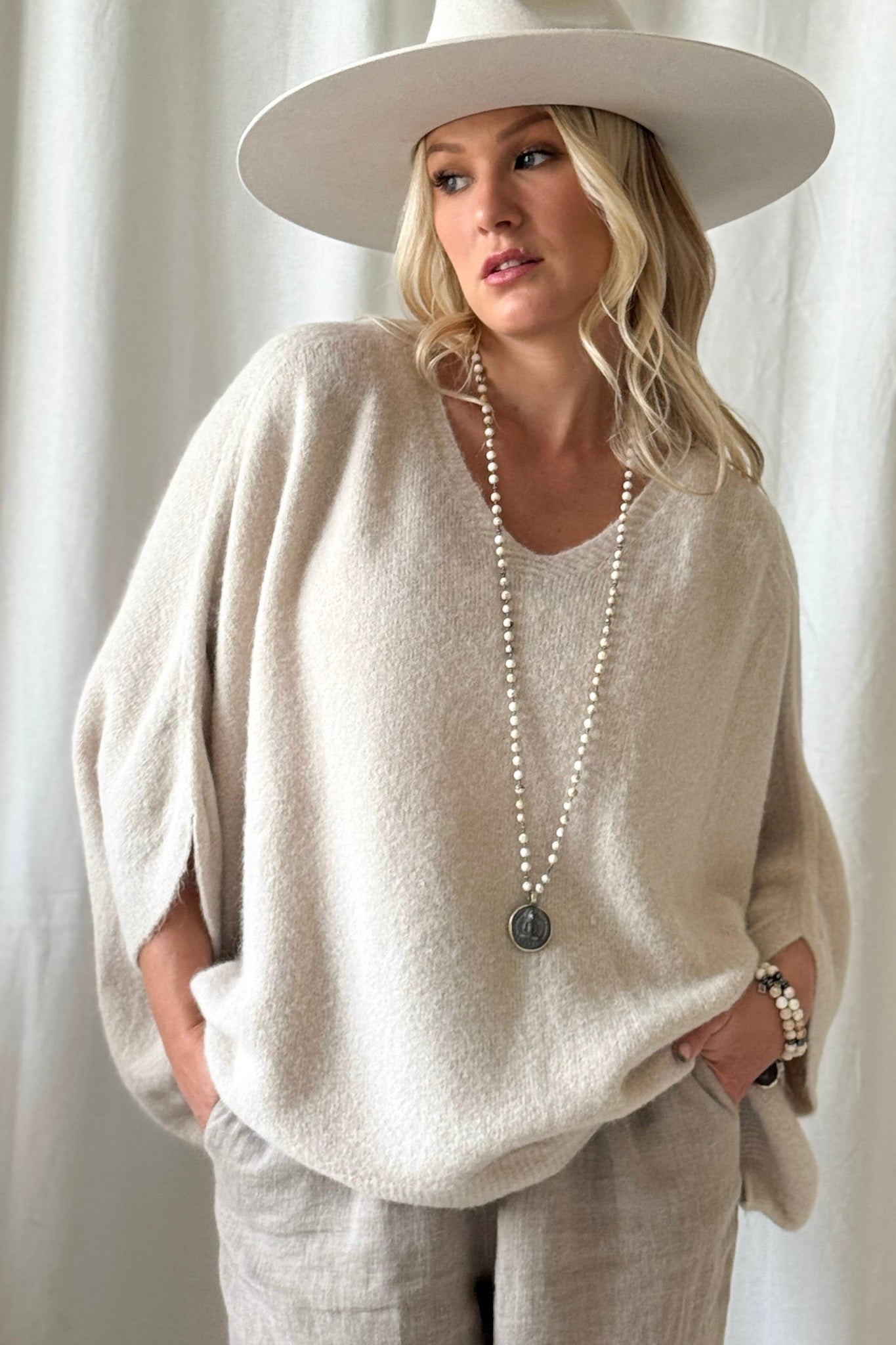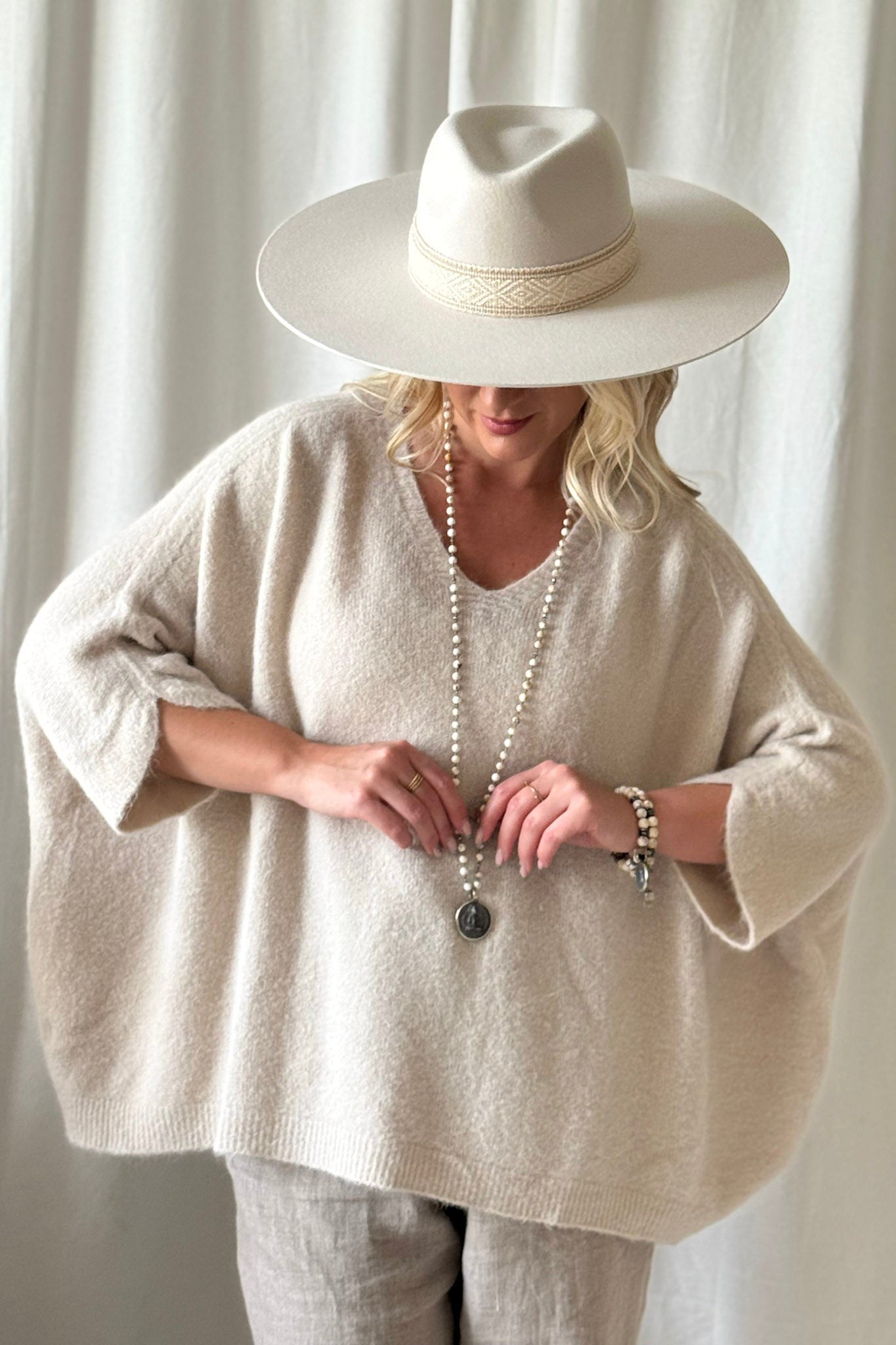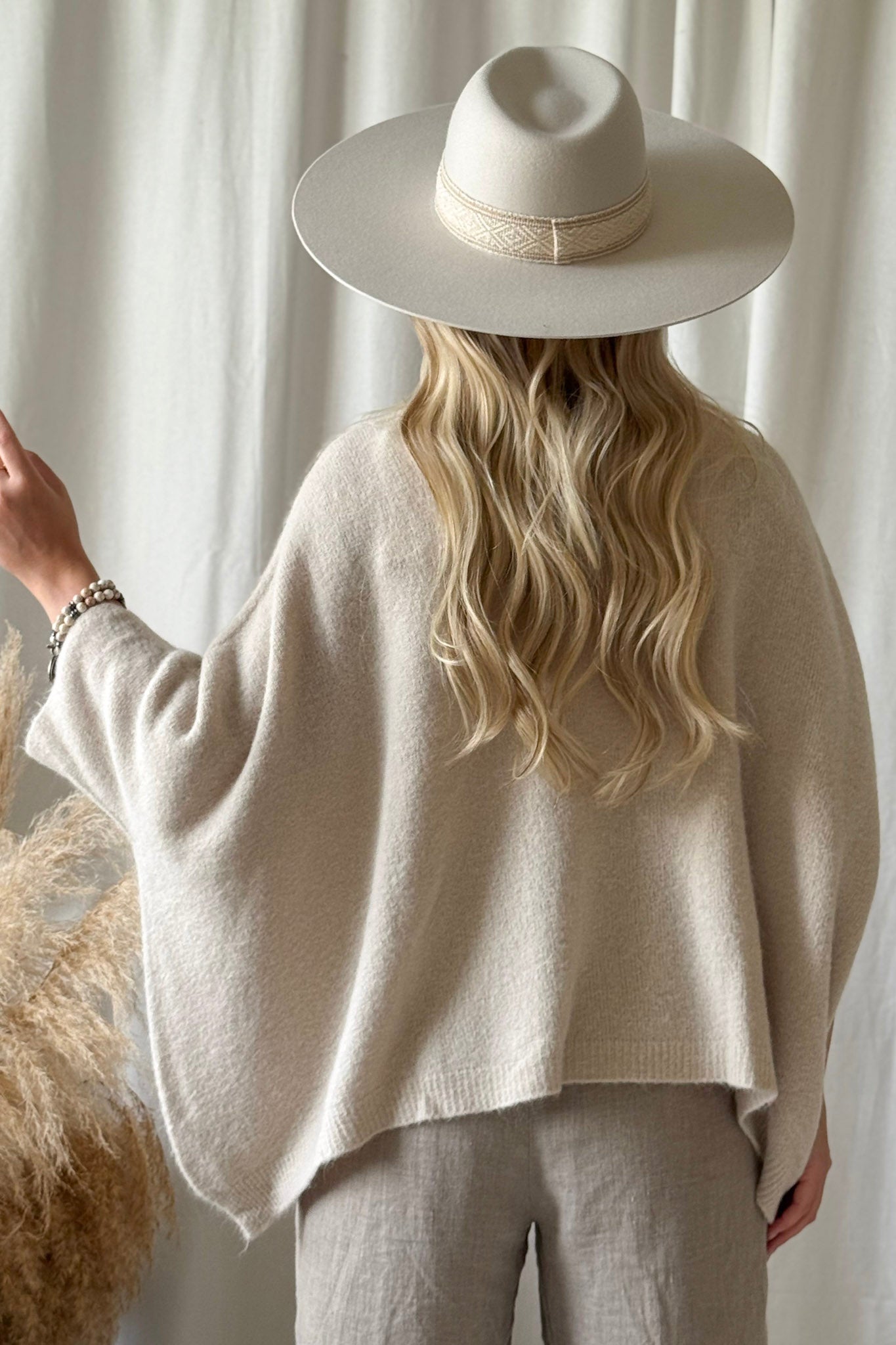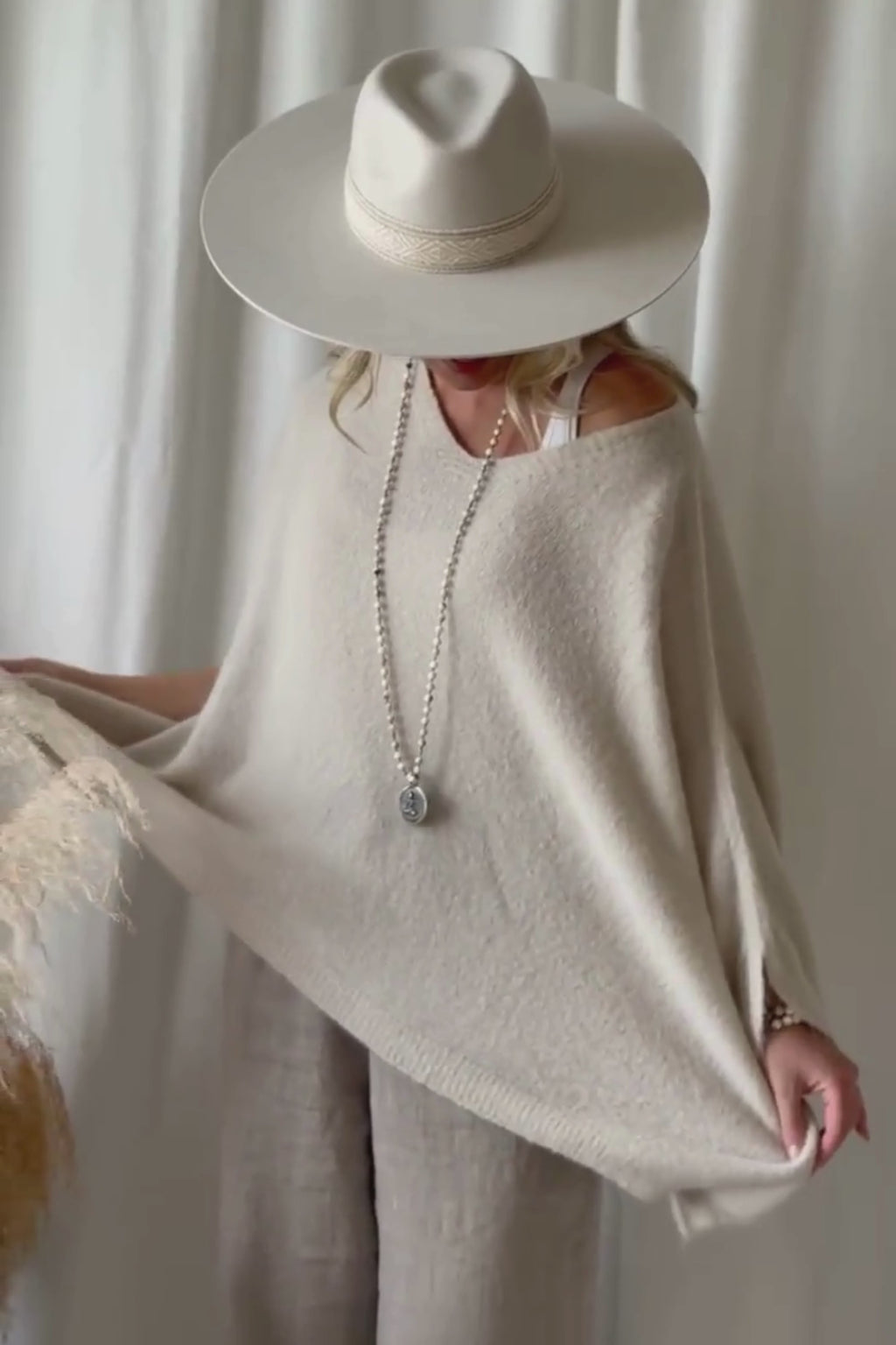 Ihanaa pehmeyttä ja rentoa tunnelmaa. Neule on väljä ja kevyt lyhyillä hihoilla. Ponchomainen neule hieman pyöristetyllä v-pääntiellä lämmittää mukavasti.
