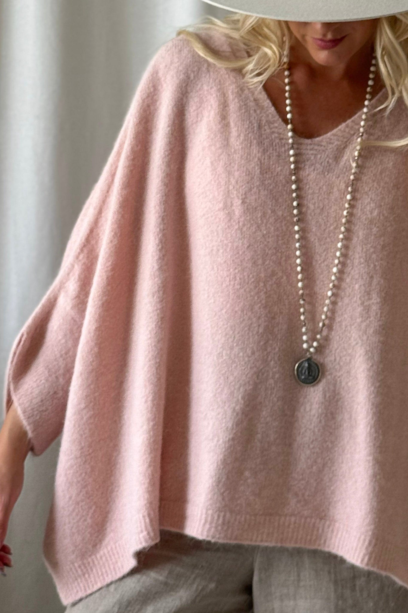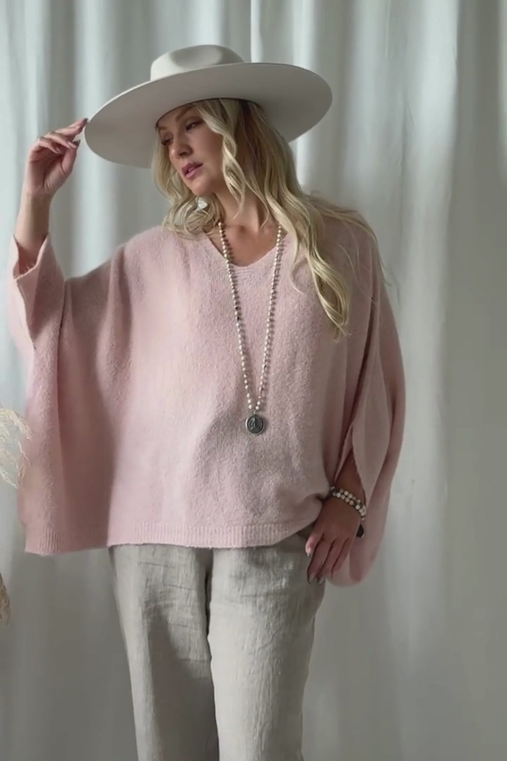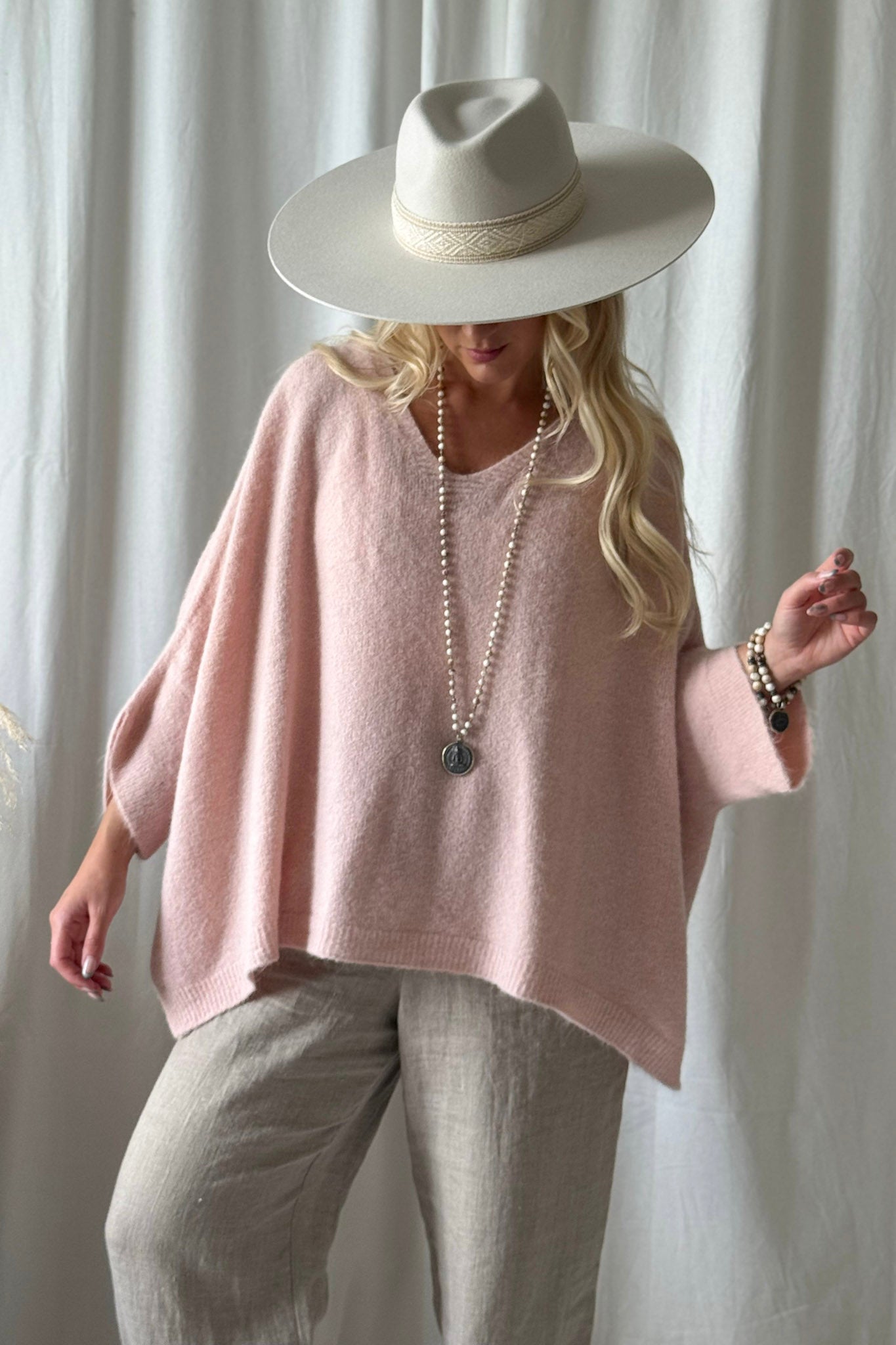 Ihanaa pehmeyttä ja rentoa tunnelmaa. Neule on väljä ja kevyt lyhyillä hihoilla. Ponchomainen neule hieman pyöristetyllä v-pääntiellä lämmittää mukavasti.