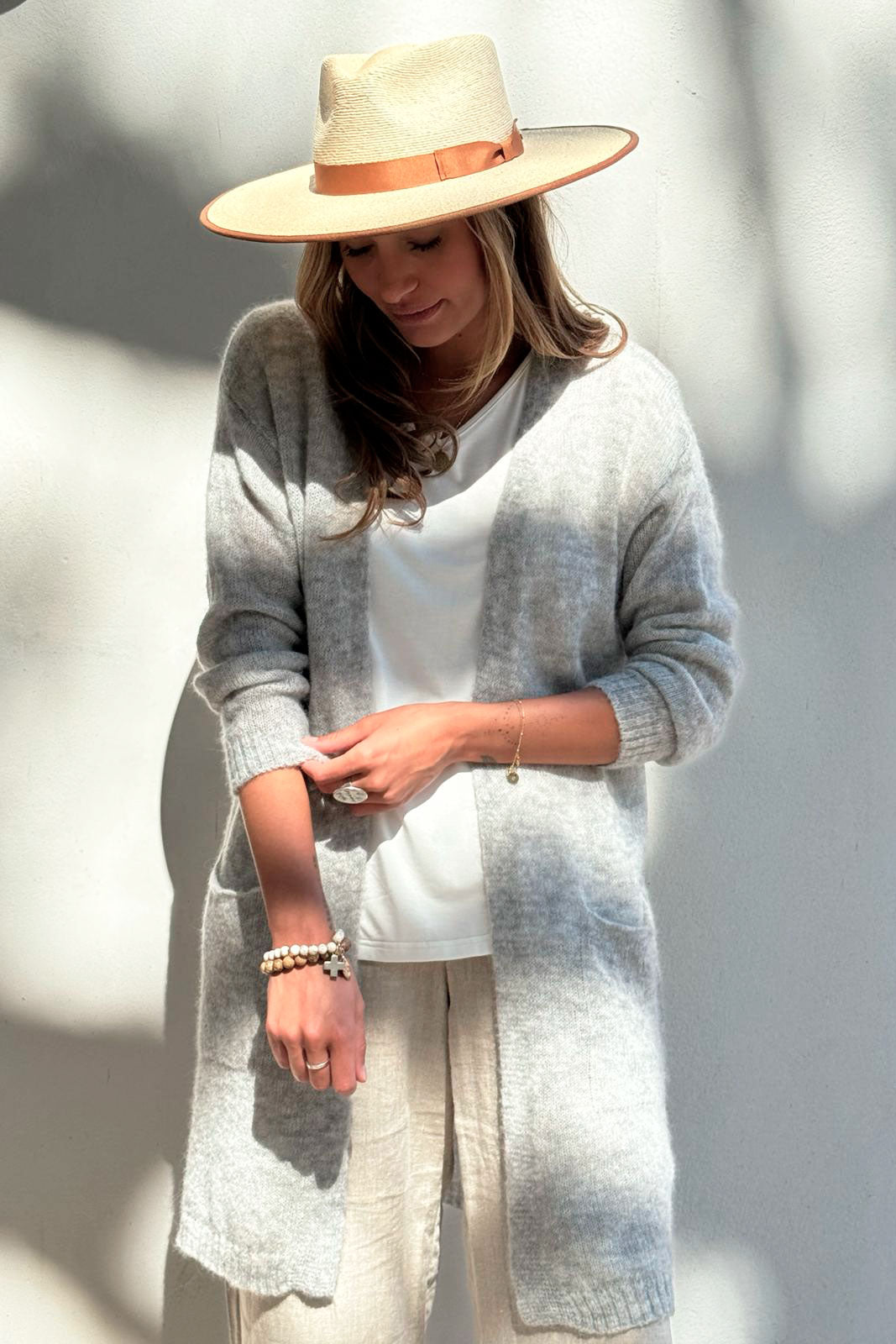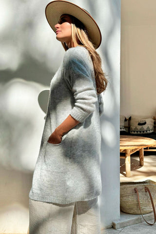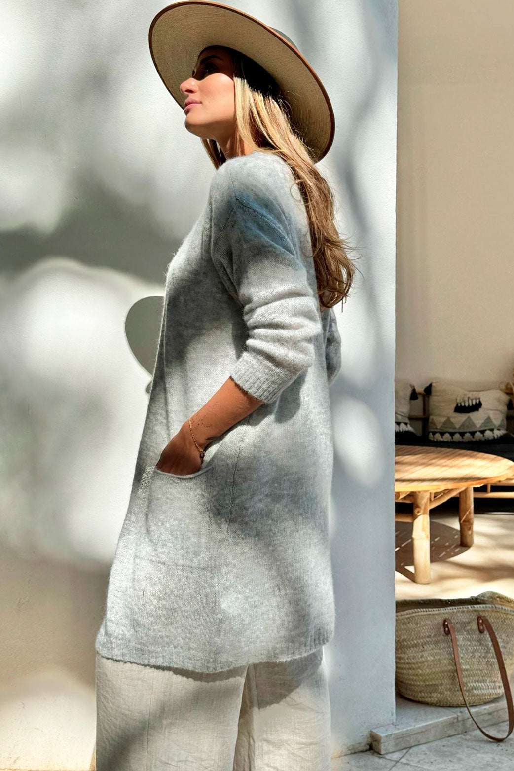 Henkäyksen kevyt ja pehmeä neuletakki ylellistä alpakan ja neitsytvillan sekoitusta. Edestä avoin malli ja sivuilla edessä taskut. Laadukas italialainen lankamateriaali.