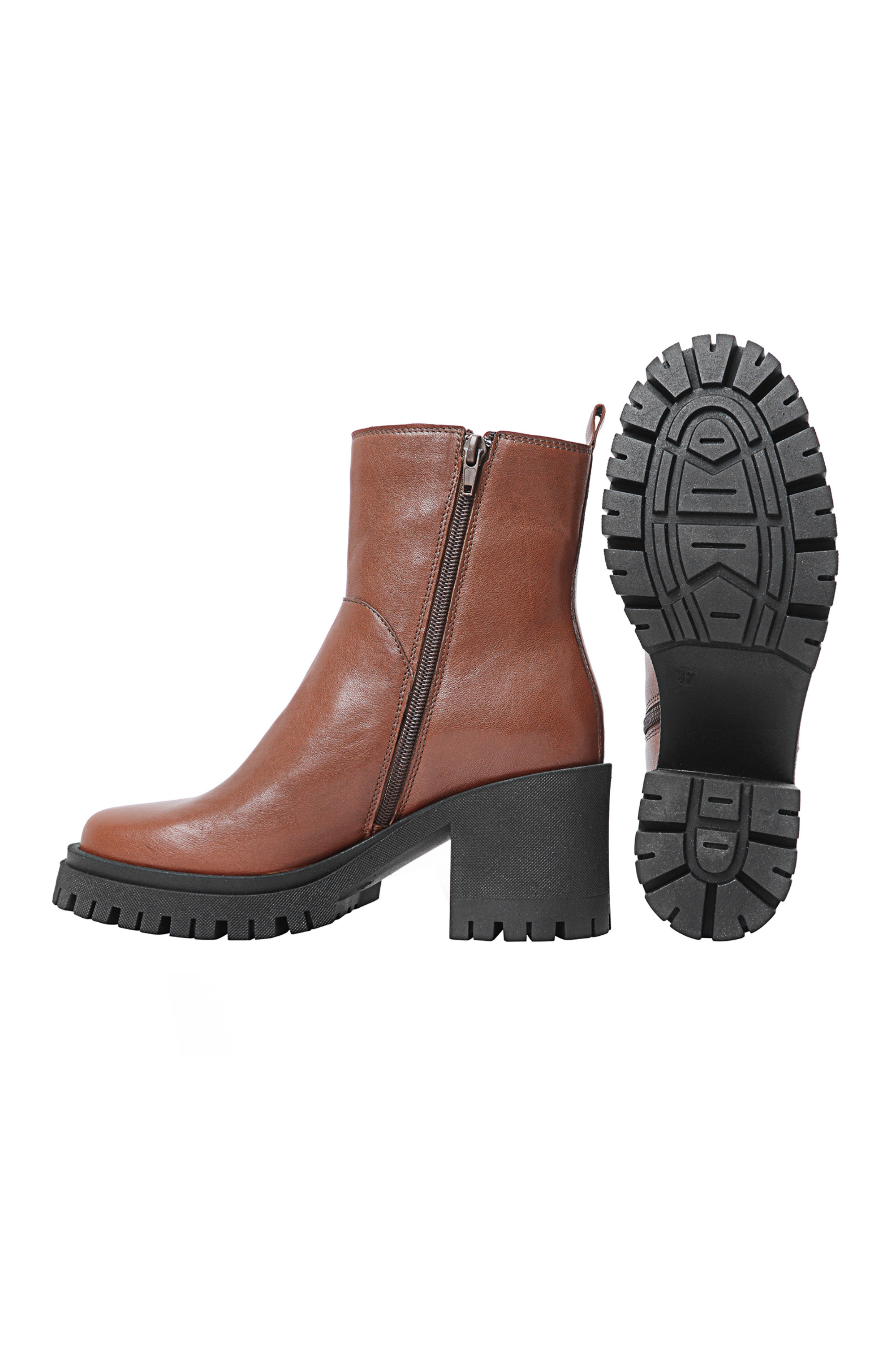 Trendikkäät korkeat nahkanilkkurit, joissa sivulla vetoketju helpottamaan pukemista. Kenkä on chelsea boots mallinen korolla.